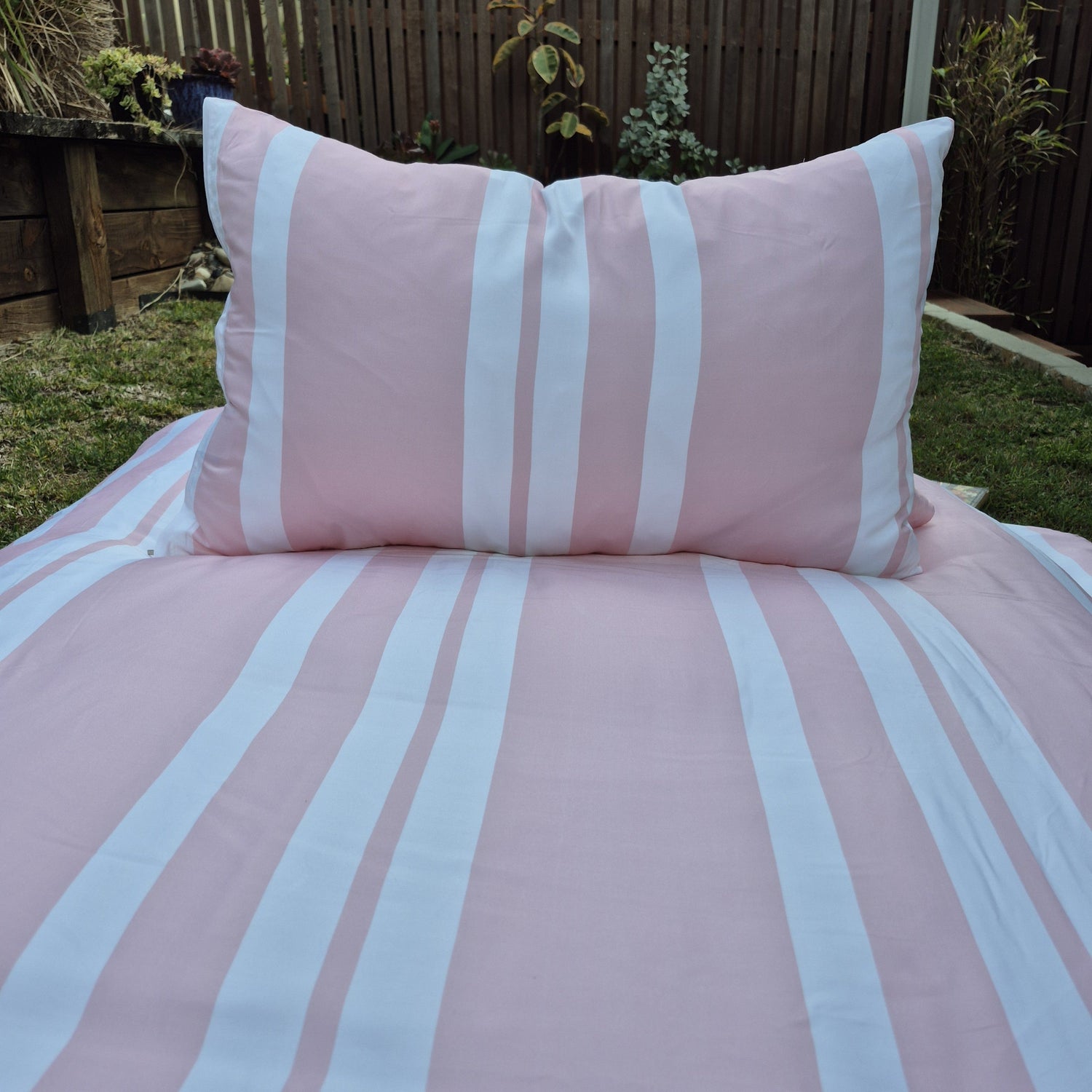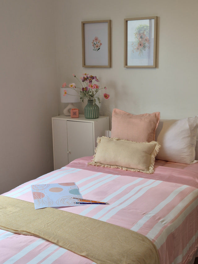 The Rose Quartz Pink Stripe bamboo quilt cover set brings a sense of ease and quiet charm into the bedroom - clean, comforting and beautifully timeless.